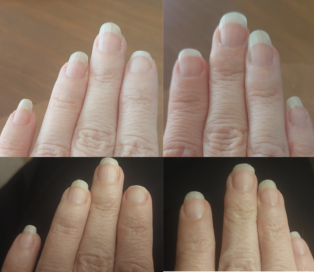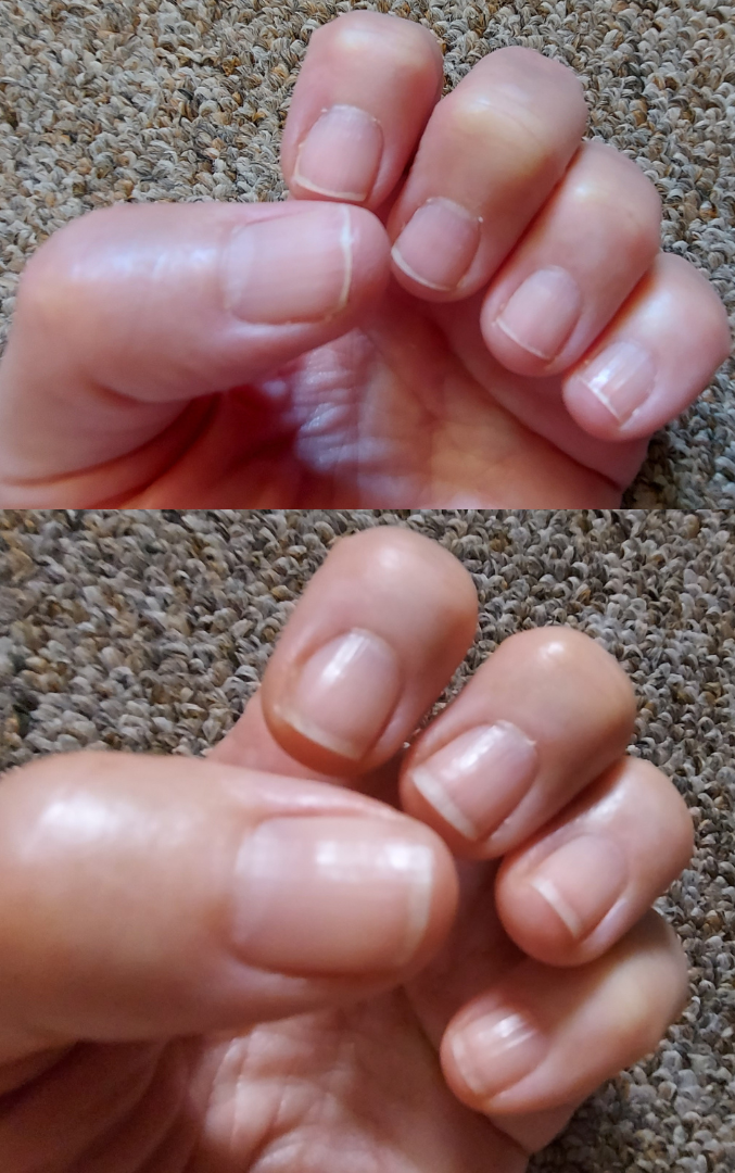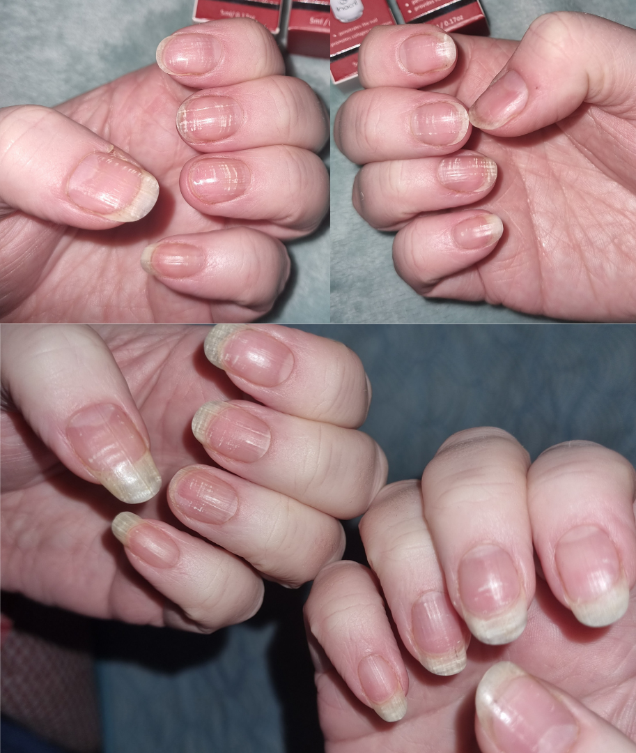 Some (nails) broke and chipped before I got my magic bottle so I cut them and started again with my Inacril. I had acrylic nails for 20yrs so they have lines running down them. 'm not going back to fake nails