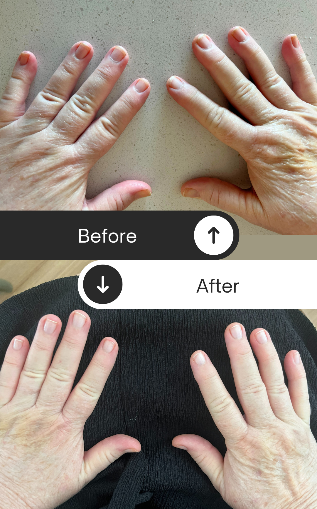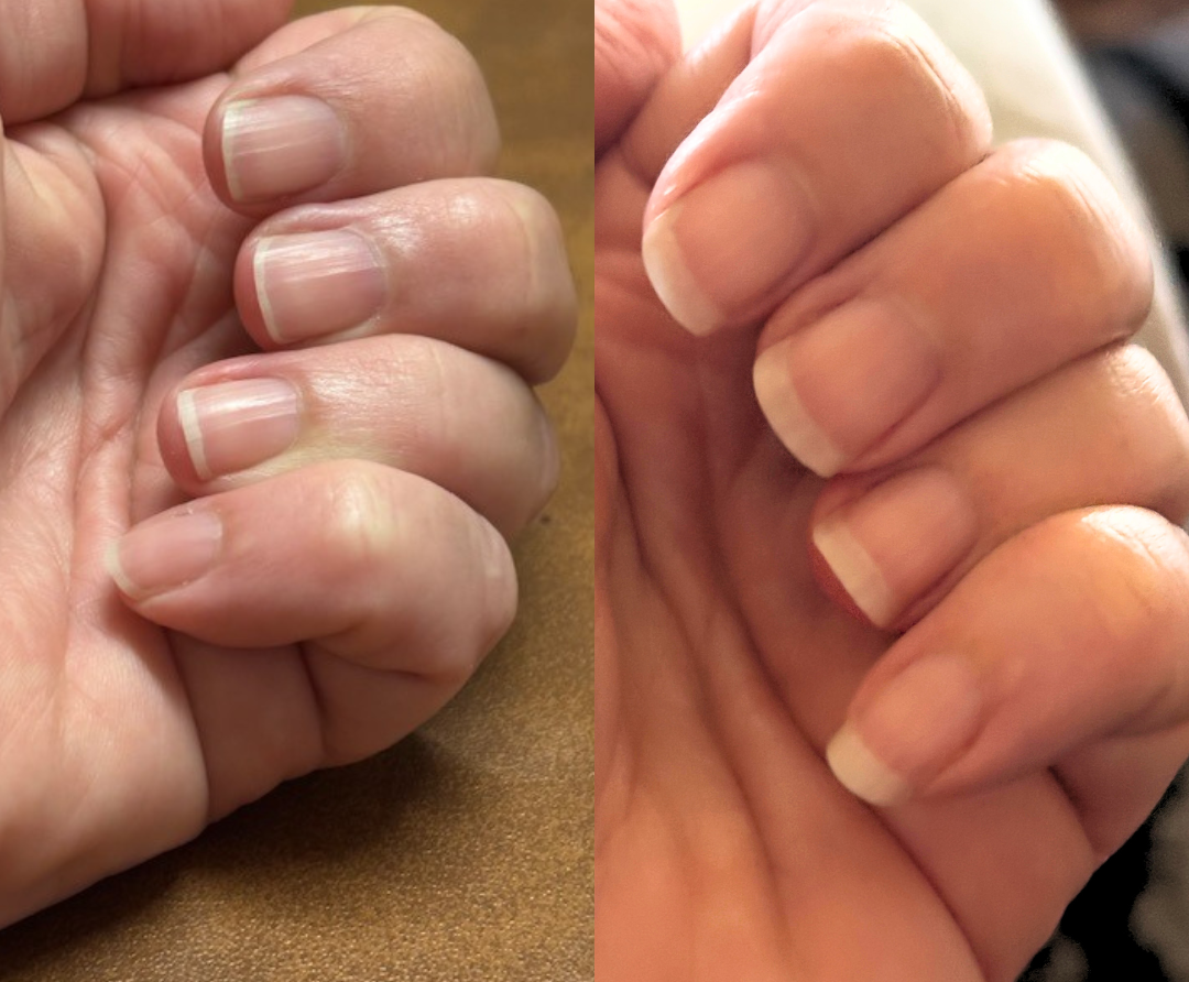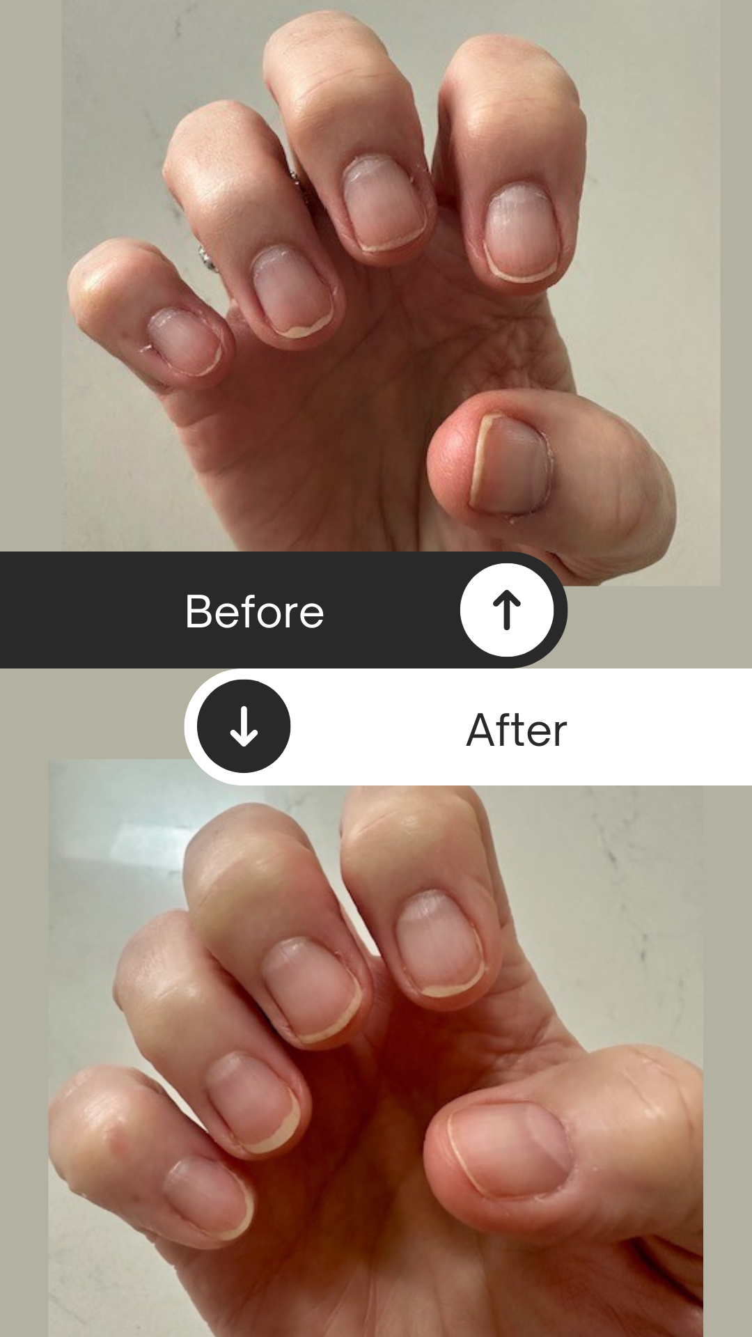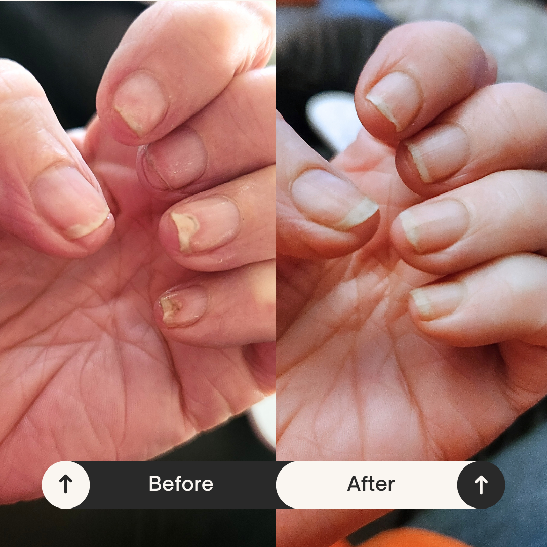 genuine improvements customers have experienced with our nail serum, shown through real before-and-after photos.
