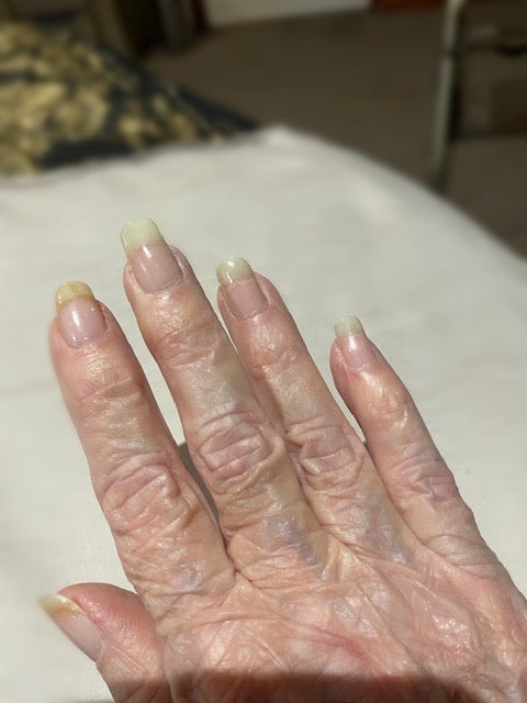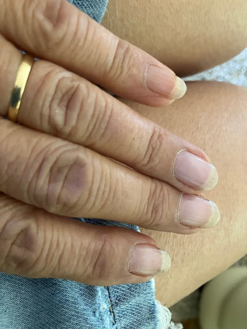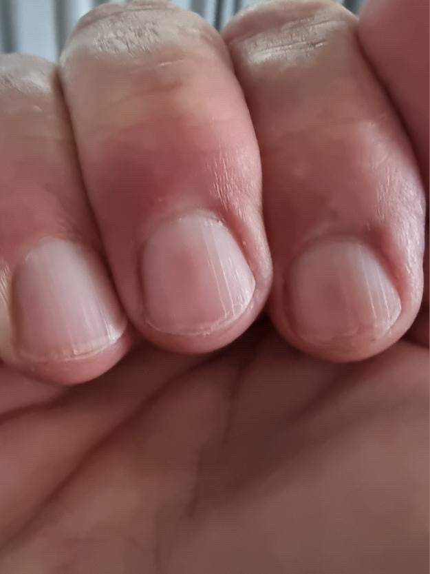 Some (nails) broke and chipped before I got my magic bottle so I cut them and started again with my Inacril. I had acrylic nails for 20yrs so they have lines running down them. 'm not going back to fake nails